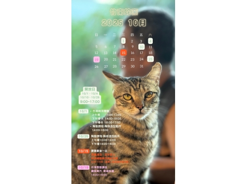 開放日10/1、10/4、10/10、10/25 10/1 台灣碗茶體驗&陶藝課程-陶板造型創作 × 10/19 台灣香藝講座:馥郁東方 香道拾遺 × 10/25陶藝課程-陶板造...