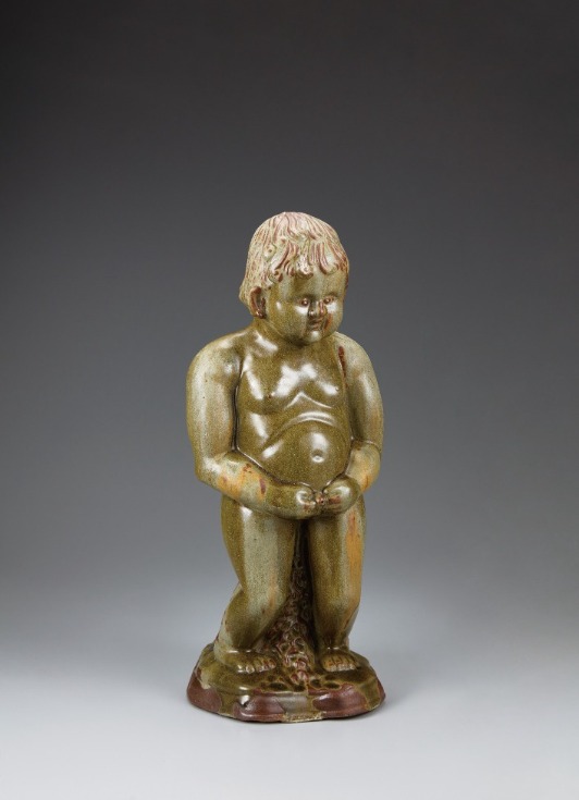比利時的尿尿小童非常有名,但林添福從未見過原作,民國72年他僅憑一張他人提供的圖片,靠著想像力創作出了屬於自己的尿尿小童雕塑,也自己完成石膏模分片。不料,外貿商人將第一件打樣品帶走後,從此消聲匿跡,林添福從此放棄量產和外銷的念想,專心只作單一作品的手工藝。