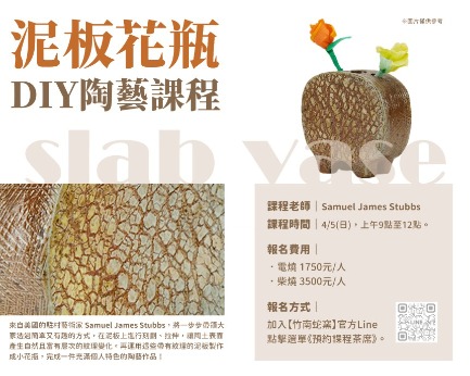 駐村藝術家 Samuel James Stubbs,將於 4/5(日)9:00–12:00 帶來「泥板花瓶」DIY課程!