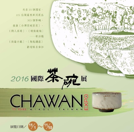 2016年國際茶碗展於11月1日至10日舉辦,展期為期10天,除了靜態展覽,同時出版作品集。亦將舉辦大師講座、陶藝示範,並帶領國外陶藝家至南投草屯、苗栗參與製茶工藝文化等活動,藉此推展文化外交。接著舉辦國際高溫柴燒工作營,讓國外的陶藝家能深入體驗竹南蛇窯獨步全球的高溫柴燒技藝。讓國內、外的陶藝家及陶藝愛好者能有更多交流機會。