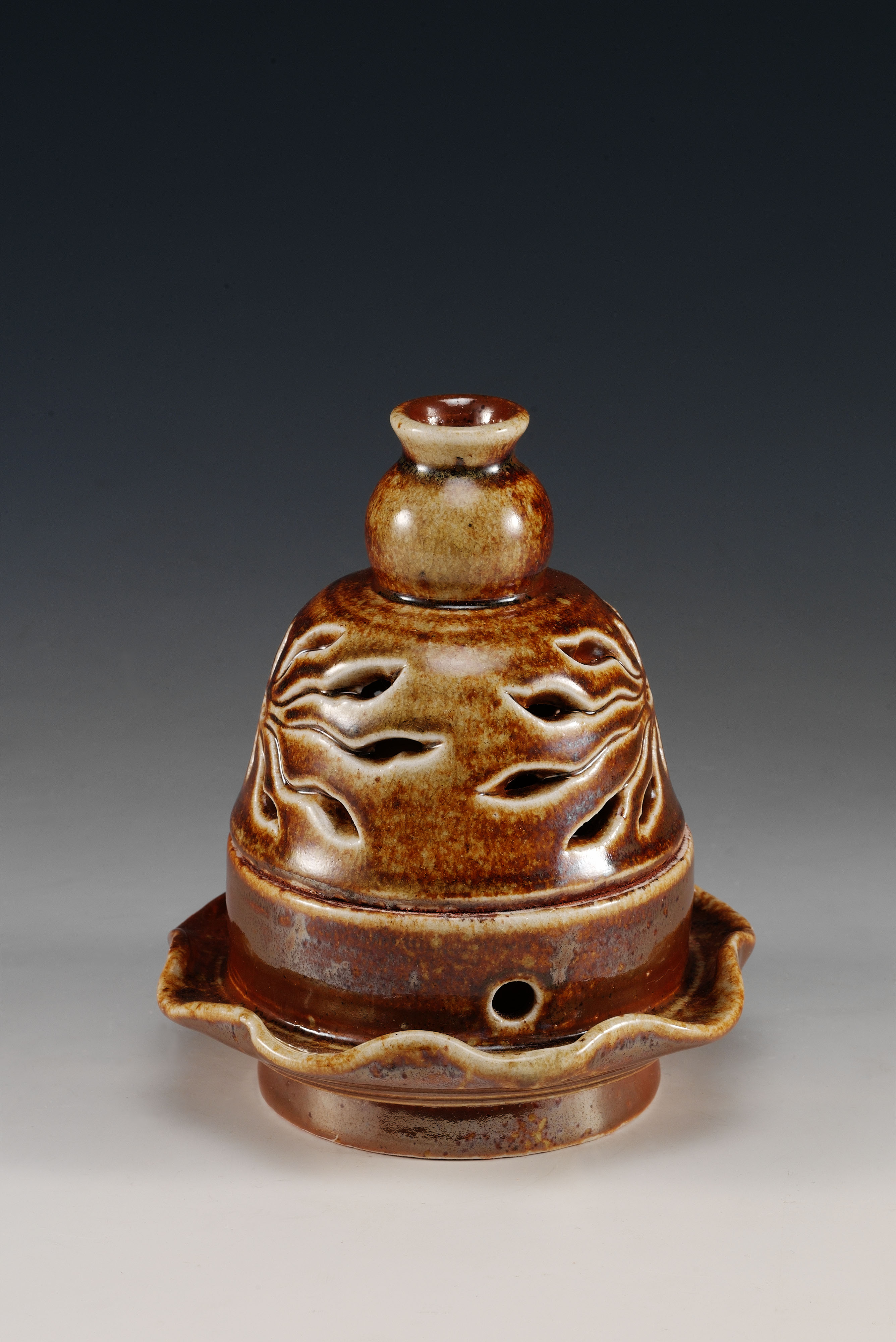 林添福天性樂觀開朗,知足常樂,因而他的陶作自然流露一種真、善、美的韻味;他天賦異稟的美感與創作能力,表現在立體造型、雕塑、刻畫上,越到高齡,爐火純菁,越令人讚嘆!