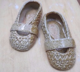 駐村期間,我的創作分了五個類別:工具(手)、寶藏、尋月亮、台灣製造 (Made in Taiwan),拉坯日記。「台灣製造」這組作品,是駐村時給我領受最深的,創作要常常守著初心,一份永遠保留單純喜歡的心、保持最初的那種狀態,對事物保持探索和好奇的精神,不被自己固有的想法所箍禁。在我感到創作停滯的一個晚上,做了一個夢,夢見小時候的我,大概5、6歲,穿著整齊的校服,踏著一雙黑色的皮鞋,背著一個小書包一臉好奇好像正要上學去。醒來的時候,那雙鞋子依然存在我的腦海裡,鞋子喚醒了我的初心,要保持最起初、最單純的喜愛而創作,就如同孩子們那種純真求知的慾望,未受世俗影響。這組作品一共做了十一雙不同款式的童鞋,分別用了不同的陶土,還請香港的朋友傳來他們孩子的鞋子照片作為藍本,我也期待它們燒成的模樣。