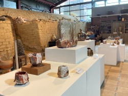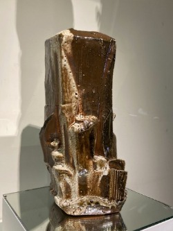 接著將作品挖空以形成內部空間,再用含鐵的泥漿裝飾,施以志野風格的釉藥,並在柴窯中以15至18小時燒成。
