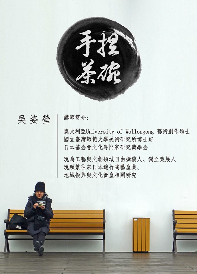 曾於台灣、日本及澳洲研讀相關領域,目前正在國立臺灣師範大學‧美術研究所博士班就讀,本次課程,吳老師將分享手捏茶碗經驗並教我們如何捏出屬於自己的茶碗!