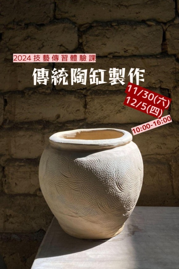 使用盤泥條盤的方式基本成型,再使用傳統的拍打法修飾,後拍出印紋,親手製作並學習復刻傳統陶缸型制,窯主林瑞華老師更是肩負傳承使命,延續傳統陶技藝,展現臺灣工藝精神。