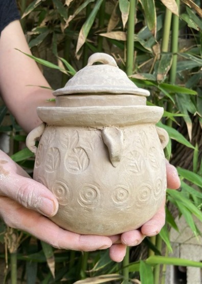 此課程將傳統豬油甕縮小,捏塑成一首可掌握的迷你版,仍保留原本放油、鹽、糖等功能,亦可作為小茶倉或單純擺飾,融合現代人生活之中。