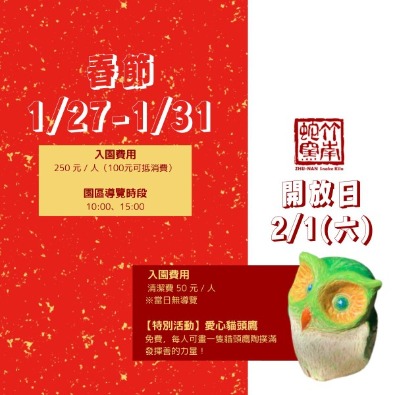 每月1號開放日免預約,酌收清潔費50元,其他時間請一週前預約參觀。