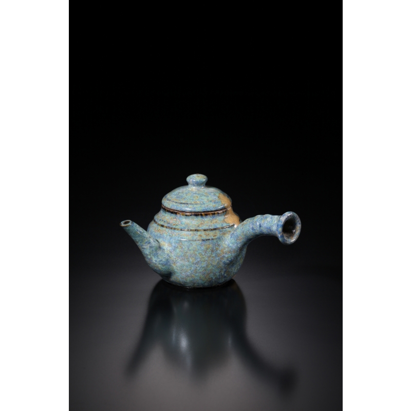 三重釉側把壺