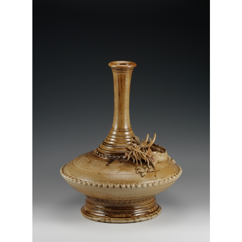 「長景瓶」系列為林添福的代表器型之ㄧ,圓雕盤龍又是他的拿手絕活;2006為工藝所拍攝「工藝薪傳錄」時所示範作品;老陶師不但寶刀未老,所展現的陶藝工藝技藝和「頂真」的精神,足為傳世之作。