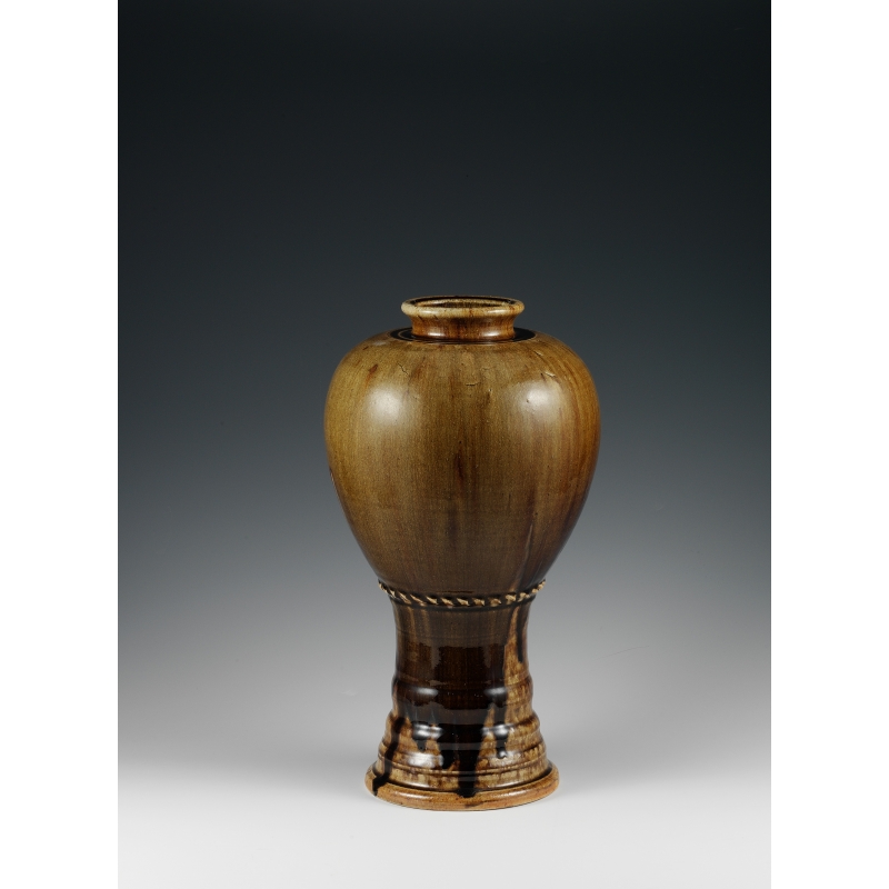 本件作品以兩件拉坯作品組合,再施以泥灰釉。在柴窯裸燒高溫燒到1380℃,並持溫十小時以上。產生古青瓷綠釉效果,但因為用現代的裸露燒法,故意不用匣缽隔離,窯壁垂滴許多窯汗,在以前視為瑕疵,但現代陶藝追求這種意外驚喜之美,產生的變化自然、獨一無二。
